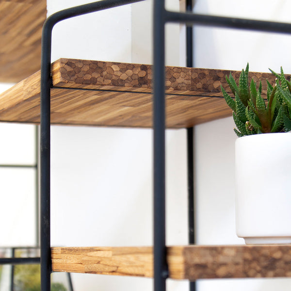 The SMILE Shelf is made from 100% recycled materials — the shelves are engineered from our signature chopstick composite material, while the string frame is created from recycled construction steel. Hang anywhere from 1 to 5 shelves on your frames, combine sizes, and mix & match different units to create a timeless design that fits your home.