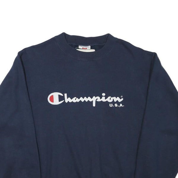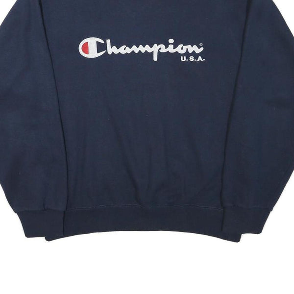 Champion mens navy blue crew neck s cotton blend logo sweatshirt casual