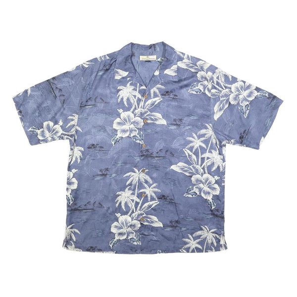 Tommy bahama mens blue hawaiian silk shirt m tropical floral print relaxed fit