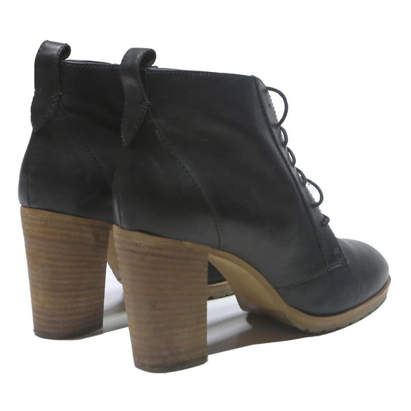 1937 Womens Lace-Up Black Leather Ankle Boots UK 6.5 Stylish Heeled Footwear