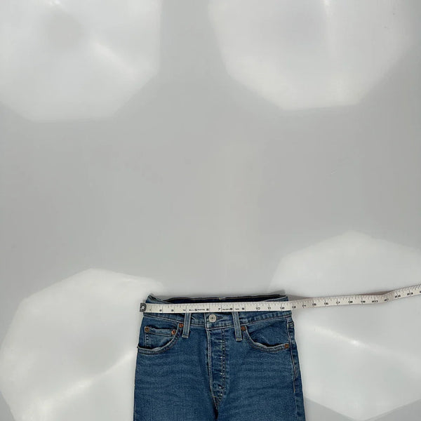 501 Levis Jeans, fit a US size 2 with a 25″ Waist.