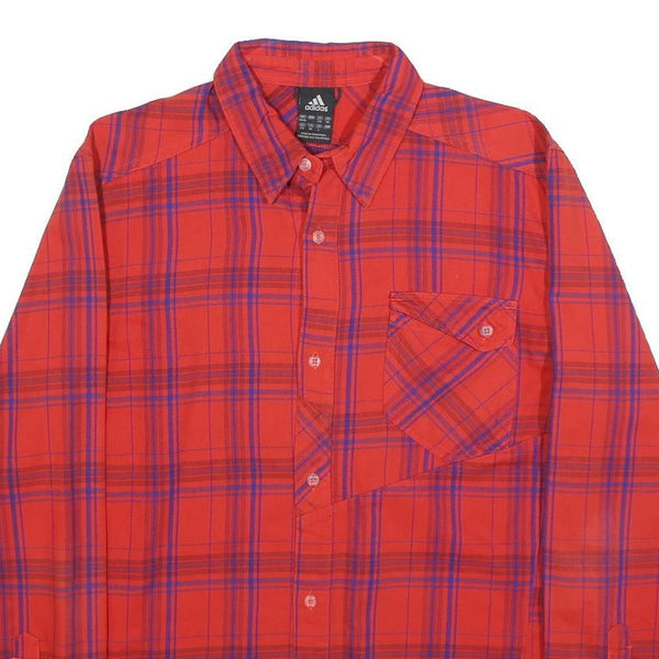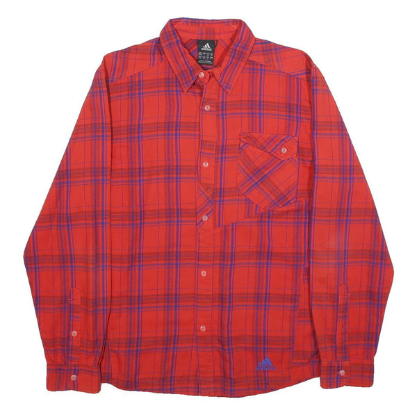 ADIDAS Mens Red & Purple Plaid Shirt M Cotton Blend Casual Long Sleeve Button