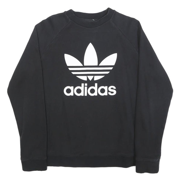 ADIDAS Womens Black Sweatshirt Crew Neck UK 18 Cotton Blend Logo Pullover