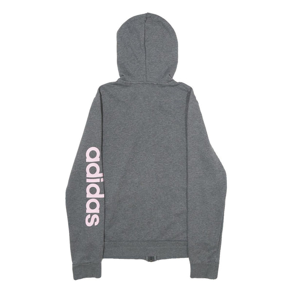ADIDAS Womens Grey Hoodie S Zip Up Pink Logo Sleeve