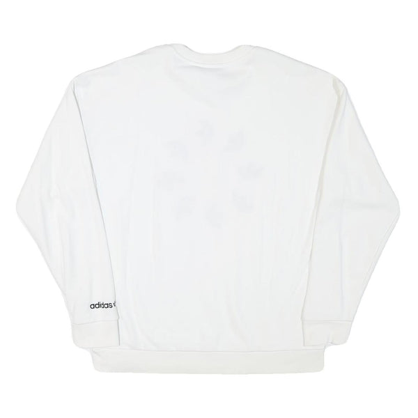 ADIDAS Womens White Cotton Blend Crew Neck UK 10 Sweatshirt Logo Print
