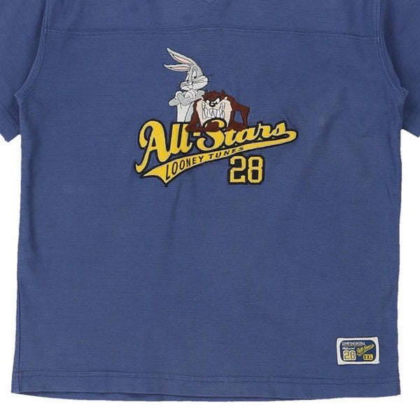 Age 7-8. All Stars Looney Tunes Warner Bros Embroidered T-Shirt - Medium Blue Cotton
