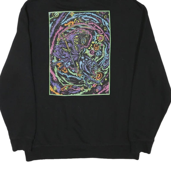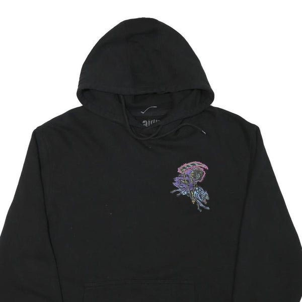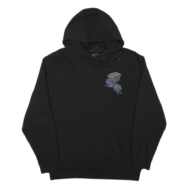 ALAB Mens Black Graphic Print Pullover Hoodie L Cotton Blend Casual