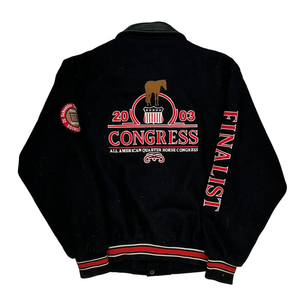 All american quarter horse congress schneiders 2003 finalist varsity jacket - xs black wool blend