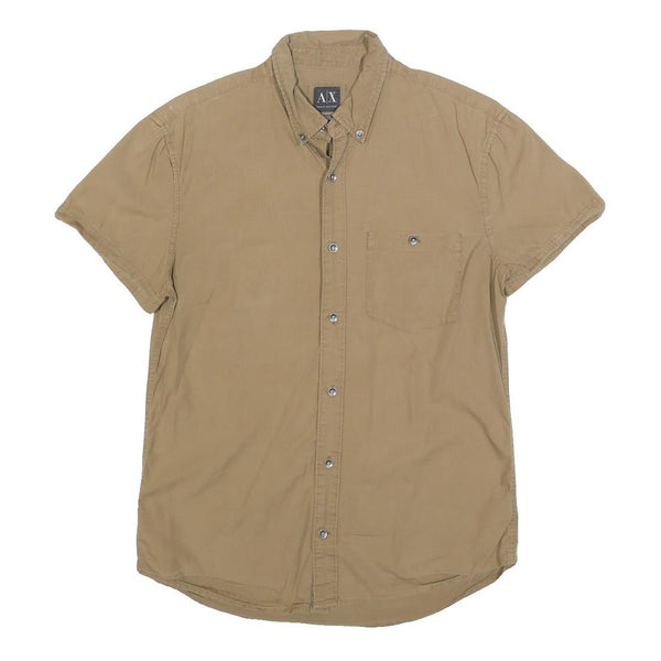 ARMANI EXCHANGE Mens Beige Casual Cotton Shirt M Button Short Sleeve