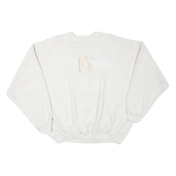 Made from a soft cotton blend, this sweatshirt offers a cosy and breathable feel, ideal for casual wear. Its relaxed and slightly oversized cut in size XL makes it perfect for layering or comfortable day-to-day wear. The minimalistic yet textured design adds a unique dimension to the otherwise plain white pullover.