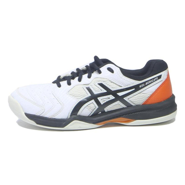 ASICS Gel-Dedicate Womens Lace-Up Trainers White Black & Orange Leather UK 5