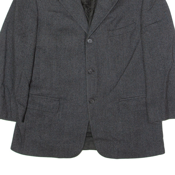 BALLY Mens Overcoat Jacket Grey Wool Herringbone L