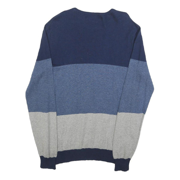 BEN SHERMAN Mens Blue & Grey Colourblock Patterned Wool Blend Jumper Crew Neck M