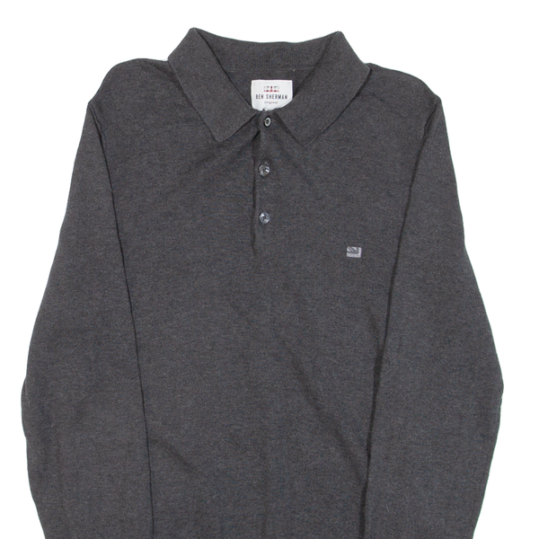 BEN SHERMAN Mens Polo Shirt Grey Long Sleeve XS