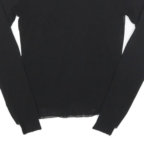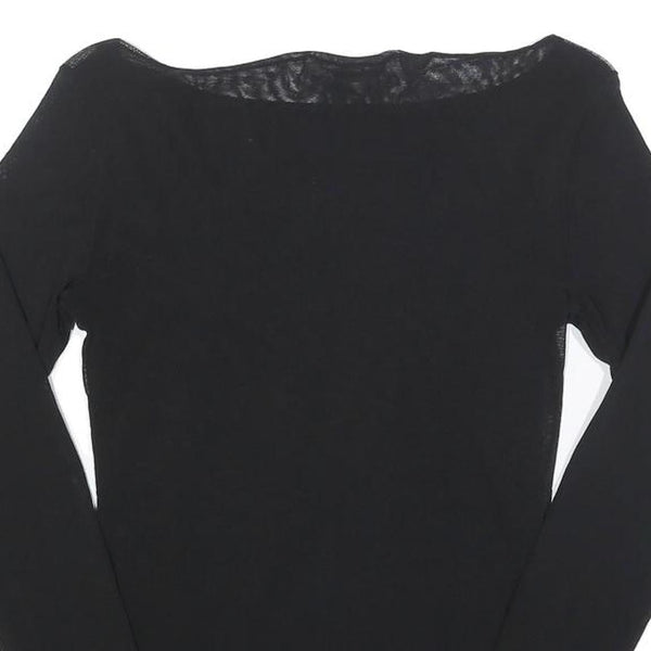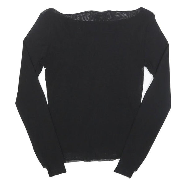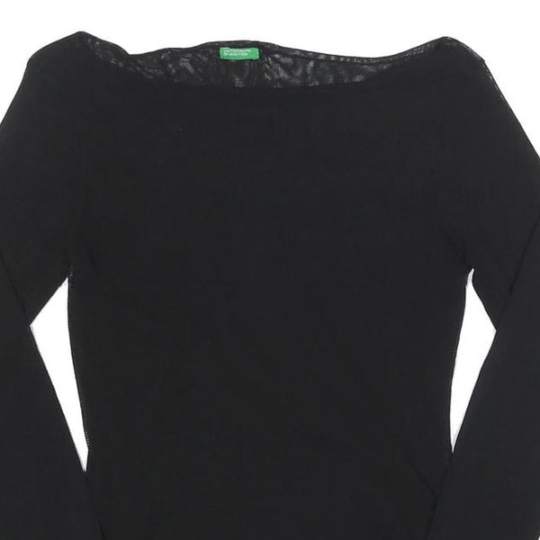 BENETTON Girls Black Basic Long Sleeve Boat Neck Top L Nylon Slim Fit