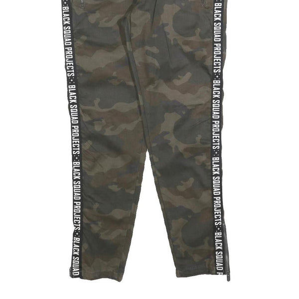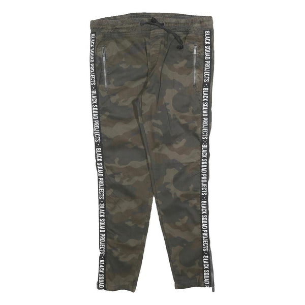 BLACK SQUAD Mens Cotton Blend Green Camouflage Slim Tapered Trousers W34 L30