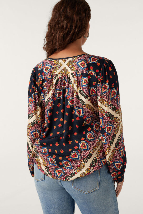 We love the JEDI shirt's chic and bohemian side! This gathered blouse inspired by hippie glam has a little round neck with a loop button fastening, shoulder and wrist gathers for extra volume on the long sleeves, and contrasting wrists and should