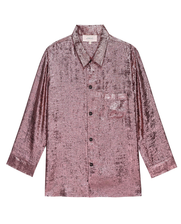 The Lounge Top. is inspired by a vintage Pajama top, reimagined in a relaxed and boxy silhouette. It features a collar with a button front placket, delicate horn buttons, and long sleeves with tailored shirt cuffs. We love wearing this easy top unbuttoned and half-tucked into our favorite jeans or back to its matching counterpart, The Voila Skirt.