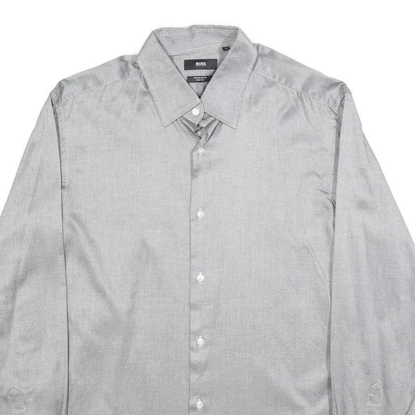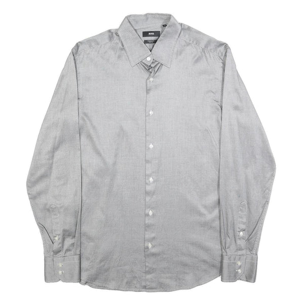 BOSS HUGO BOSS Mens Grey Cotton Shirt M Formal Long Sleeve Button Collar