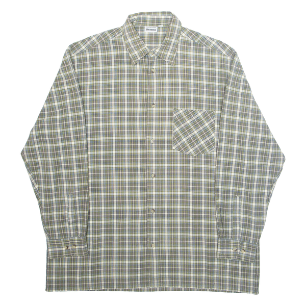 BREMO Mens Shirt Green Plaid Long Sleeve XL