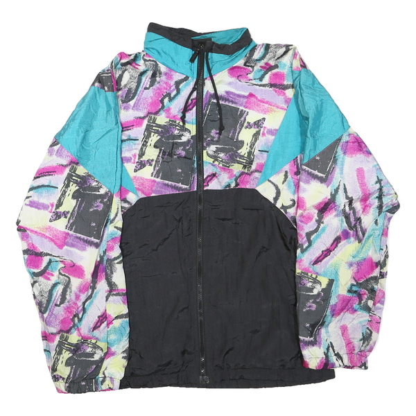 Brooks mens black & turquoise abstract print jacket m polyester blend zip