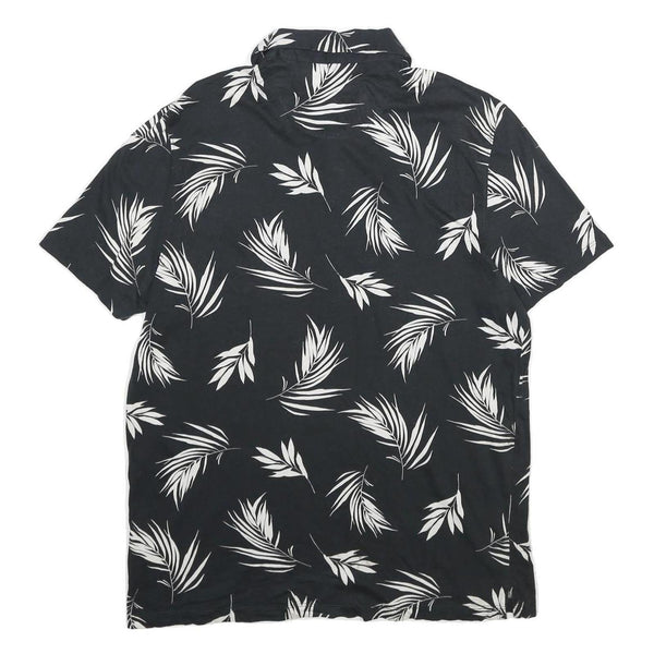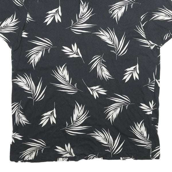CALVIN KLEIN Mens Black & White Leaf Print Short Sleeve Polo Shirt L Casual
