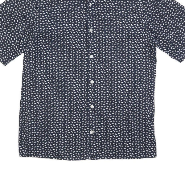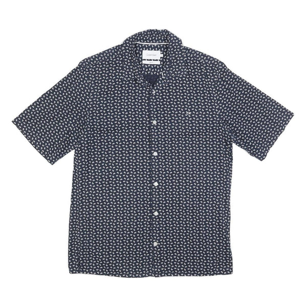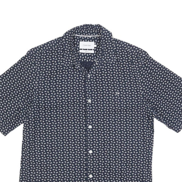 CALVIN KLEIN Mens Navy Blue & White Printed Shirt S Cotton Blend Casual Summer