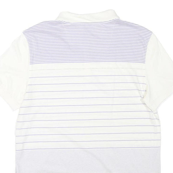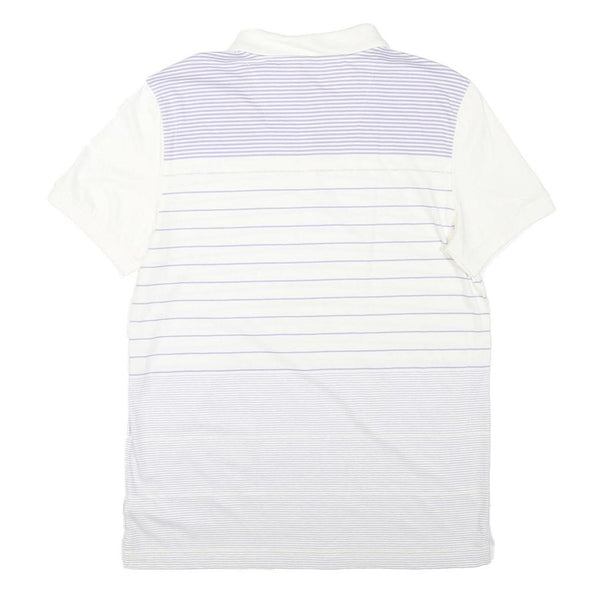 CALVIN KLEIN Mens White & Lilac Striped Polo Shirt M Cotton Blend Short Sleeve