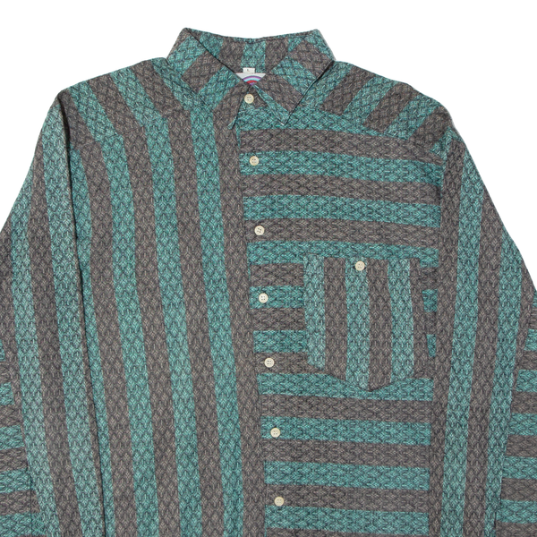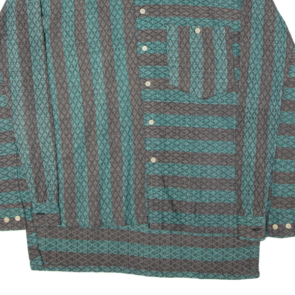CAMP DERBY Mens Shirt Green Striped Long Sleeve L