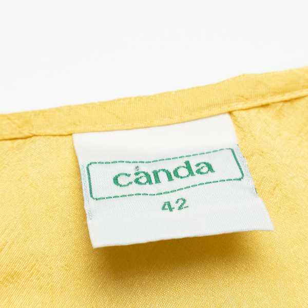 CANDA Womens Shirt Blouse Yellow Collared Long Sleeve 90s M