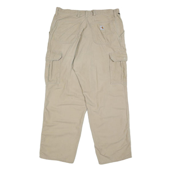 CARHARTT Mens Beige Cotton Blend Relaxed Cargo Trousers W37 L31 Workwear