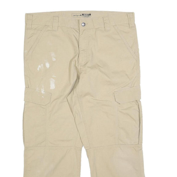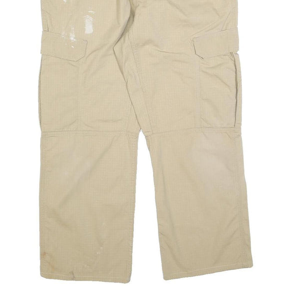 CARHARTT Mens Beige Relaxed Cargo Trousers W36 L27 Cotton Blend Zip Pockets