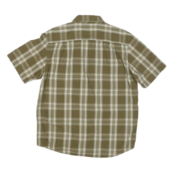 This Mens Carhartt shirt features a green and cream check pattern that offers a classic casual look. It has short sleeves and a button-down front with a single chest pocket, prominently branded with the Carhartt logo patch. The check design is bold yet understated, making it versatile for everyday wear.