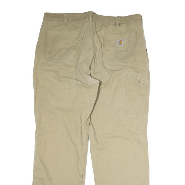 Carhartt mens relaxed beige cotton blend workwear trousers w40 l34 durable zip