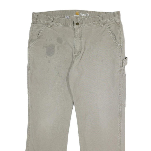 Carhartt mens relaxed fit beige cotton blend trouser w38 l30 workwear zip