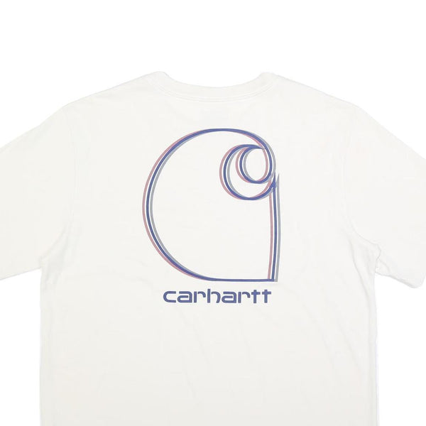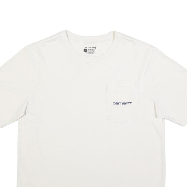 CARHARTT Mens White T-Shirt L Short Sleeve Crew Neck Branded Pocket Logo