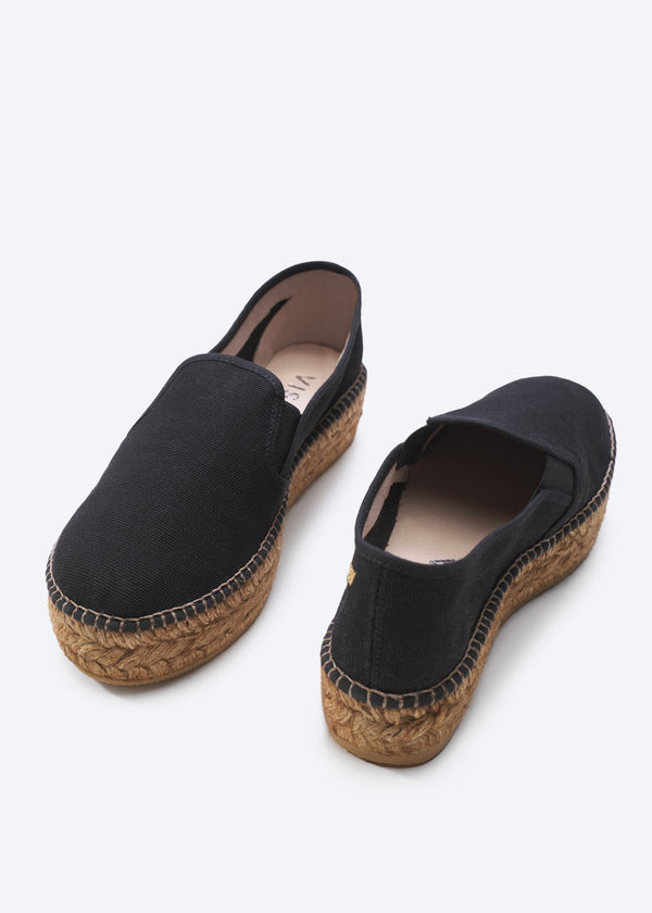 Once you’ve seen these authentic canvas platform espadrilles, you’re going to want a pair for yourself. These ultra-cool platform espadrilles will give you the fun, casual vibe you’ve been looking for. We’ve spiced up our classic handmade Spanish espadrilles with a 1.5” natural jute platform and a lightweight, breathable 100% organic cotton upper to keep you one step ahead. We’ve also given them an elastic inseam for extra comfort.