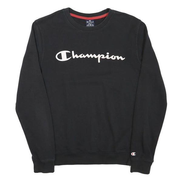 CHAMPION Mens Black Crew Neck S Cotton Blend Logo Sweatshirt Pullover