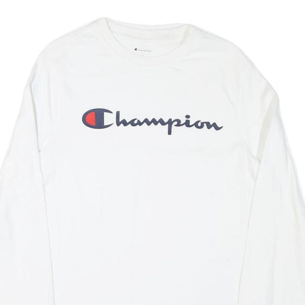 CHAMPION Mens White Cotton Blend Long Sleeve Crew Neck Graphic T-Shirt S