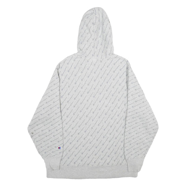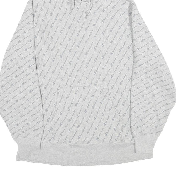 CHAMPION REVERSE WEAVE Mens Grey All Over Logo Print Pullover Hoodie XL