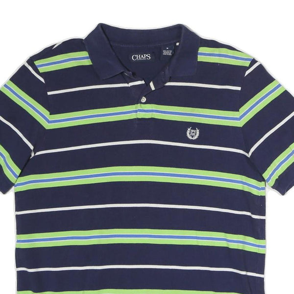 CHAPS Mens Navy Blue Green & White Striped Short Sleeve Polo Shirt M Casual