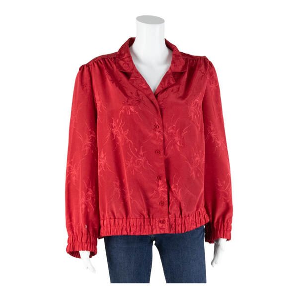 Charles vogele womens blouse red collared long sleeve 90s floral uk 14