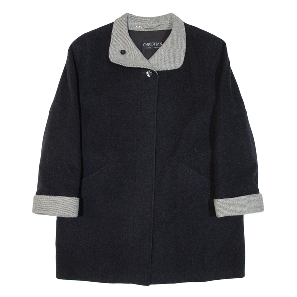 CHRISTIAN Womens Overcoat Coat Black Knit Cashmere L