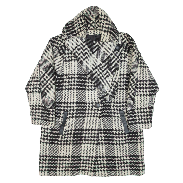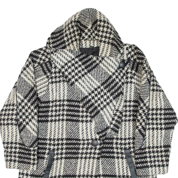 CIRSTEIN Womens Overcoat Coat White Knit Wool Check L