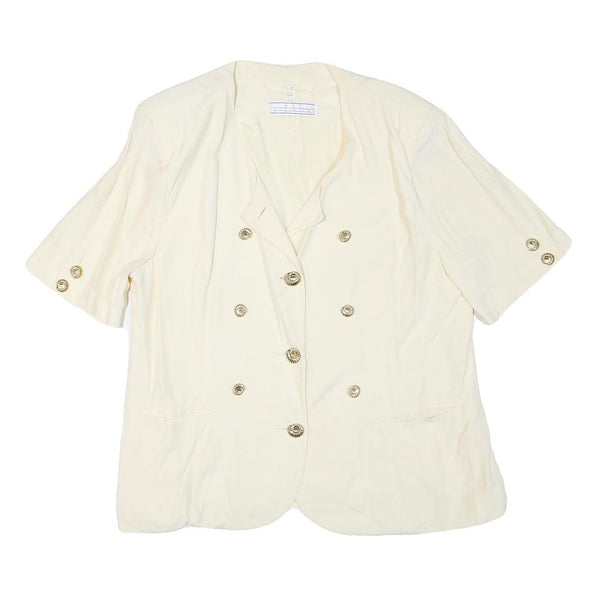 CLASSIC COLLECTION Womens Cream Button Jacket M Viscose Plain Elegant Detail