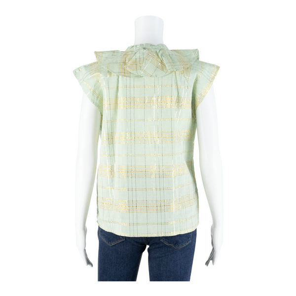 Cloo issimo womens sleeveless blouse green collared sleeveless check m