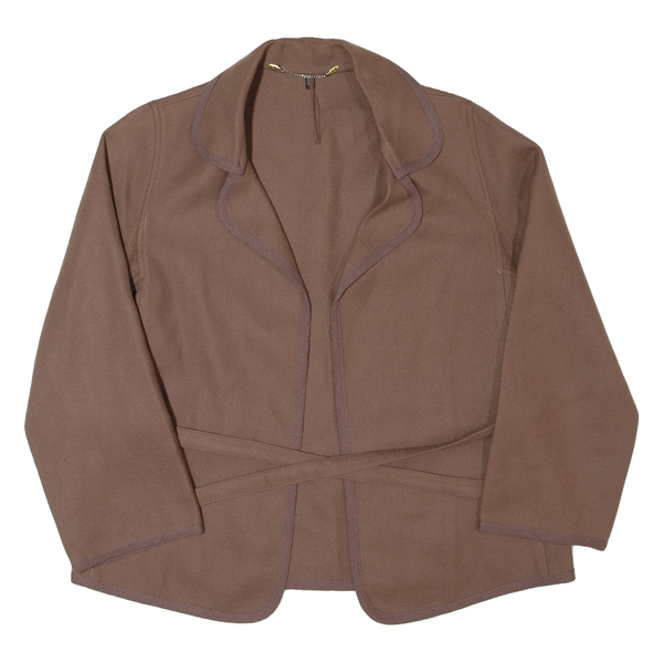 COLLECTION SAPHIR Belted Womens Overcoat Jacket Brown Wool S