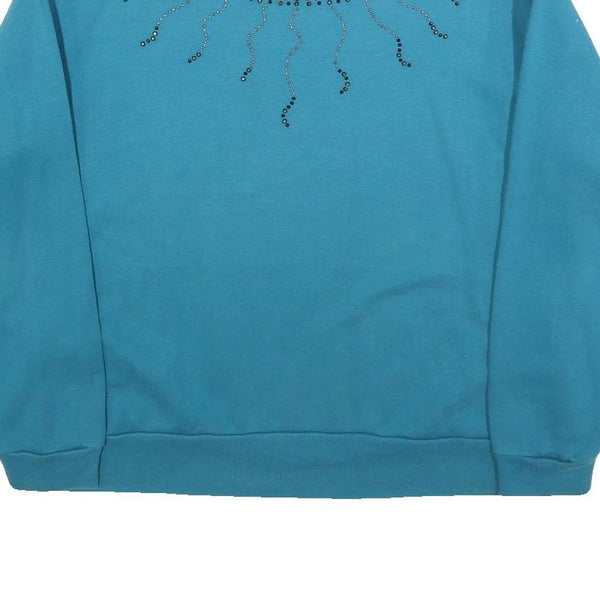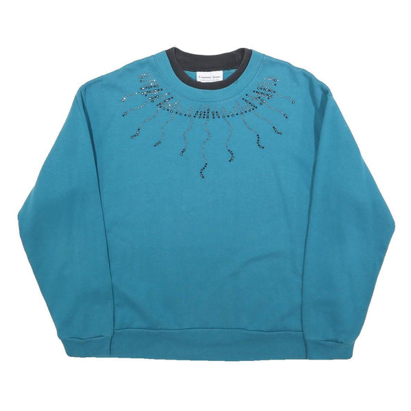 COUNTRY STORE Womens Blue Pullover Crew Neck L Embellished Sweatshirt