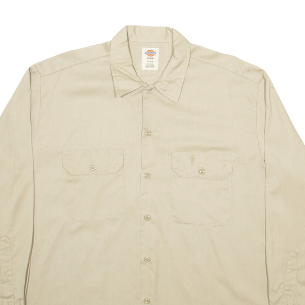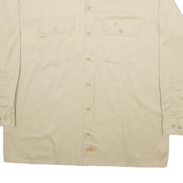 DICKIES Workwear Mens Plain Shirt Brown Long Sleeve L