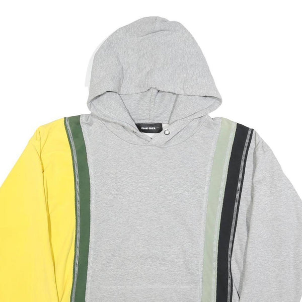 DIESEL Mens Grey Yellow Colourblock Pullover Hoodie S Casual Street Style